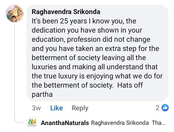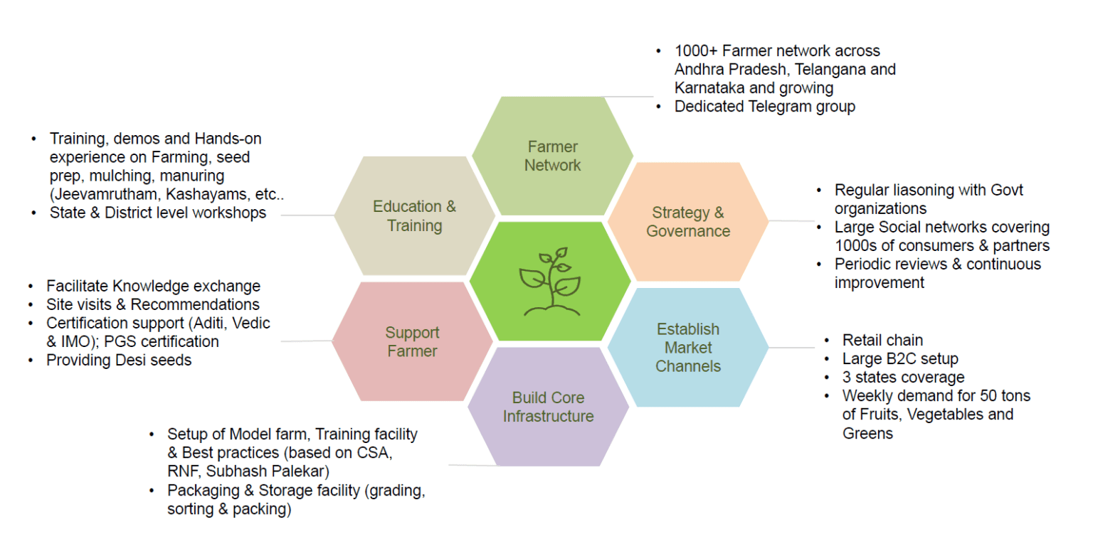 To share the good practices, Partha decided to leave IT job in 2015 and started working farmer collective initiatives. He mobilized many farmers into organic and Natural farming and created marketing platform.